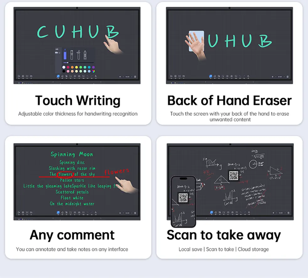 Το Smart Board του CUHUB για τη διδασκαλία στην τάξη ενοποιεί πολλαπλές συσκευές σε μια έξυπνη πλατφόρμα, μειώνοντας σημαντικά την πολυπλοκότητα των ρυθμίσεων τεχνολογίας στην τάξη.